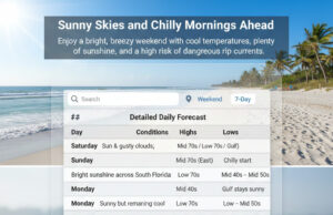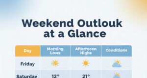 Cold mornings give way to bright, breezy afternoons with high temperatures gradually climbing into the comfortable mid-70s range.