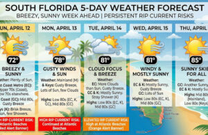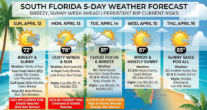 Gusty winds and sunshine will define the upcoming week as dangerous rip currents persist along the South Florida coastline.