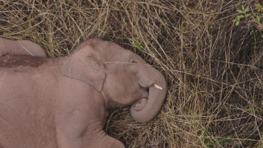 In this June 7, 2021 photo released by the Yunnan Forest Fire Brigade, a member of a migrating herd of elephants rests near Xinyang Township in Jinning District of Kunming city in southwestern China’s Yunnan Province. Already famous at home, China’s wandering elephants are now becoming international stars. Major global media, including satellite news stations, news papers and wire services are chronicling the herd’s more-than year-long, 500 kilometer (300 mile) trek from their home in a wildlife reserve in mountainous southwest Yunnan province to the outskirts of the provincial capital of Kunming. (Yunnan Forest Fire Brigade via AP)
