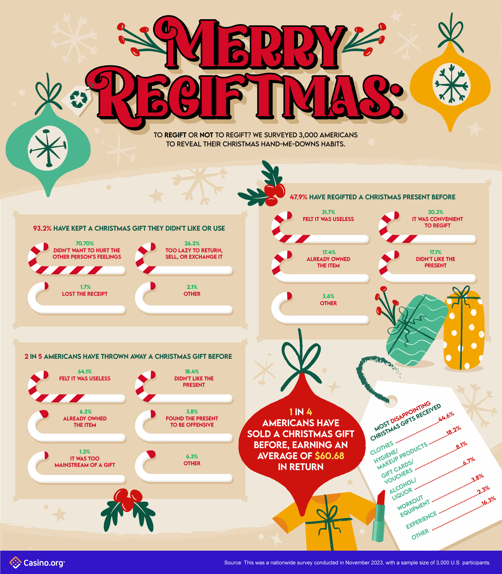 - 47.9% confess to the act of regifting a Christmas present