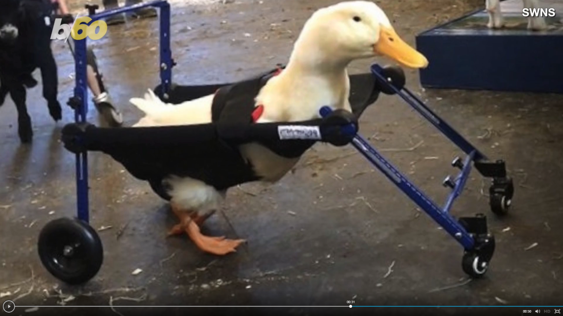Home Watch Disabled Duck Finds New Lease on Life With Tiny Wheelchair Merlin-the-duck