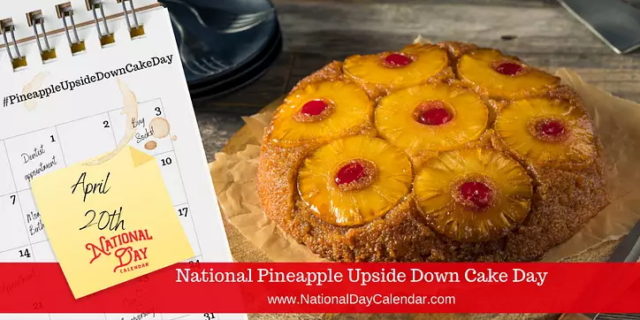 National Pineapple Upside Down Cake Day on April 20th celebrates a sweet cake that contains pineapples and cherries. Americans have been enjoying this springtime cake since the early 1900s when many cakes were made in cast iron skillets.