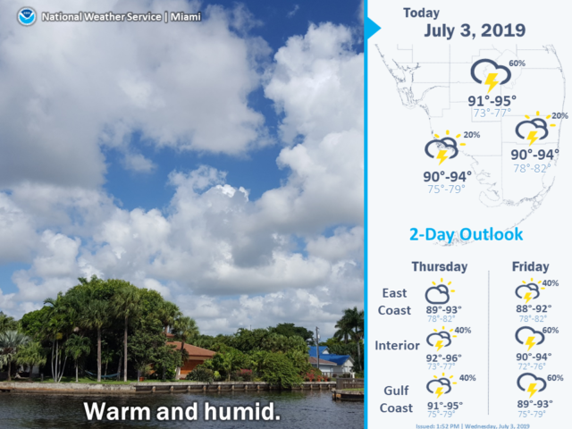 [vc_message message_box_style=”solid-icon” message_box_color=”blue” icon_fontawesome=”fa fa-sun-o”]By Donna Thomas, SouthFloridaReporter.com, certified Meteorologist, July 4, 2019[/vc_message]