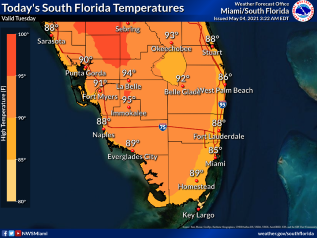 Wednesday will bring plenty of sun, a few clouds, and a few east coast showers in the afternoon. Wednesday’s highs will be near the 90-degree mark.