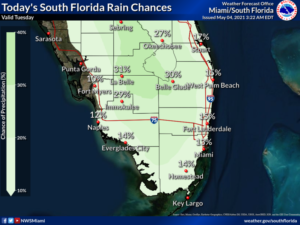 Saturday’s forecast calls for plenty of sun, clouds at times, and a few afternoon showers in the east coast metro area. Highs on Saturday will be in the mid to upper 80s.