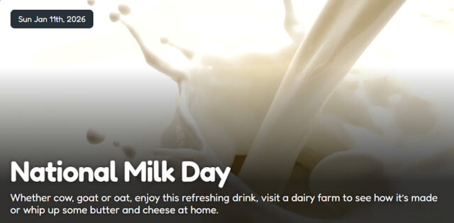 National Milk Day falls on January 11 to commemorate the very first time milk was delivered to homes in sterilized glass bottles. It wasn’t until 1878 that anyone thought to fill bottles with milk and seal them with waxed paper. Before that, conditions for storing milk (let alone delivering it) were unsanitary at best and downright hazardous at worst.
