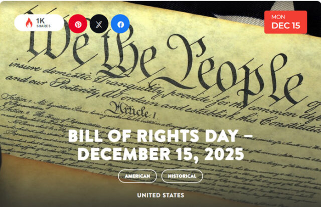 - 2019 – President Donald Trump proclaims December 15 as Bill of Rights Day again, noting that “people around the world are empowered when human rights are protected by law”.