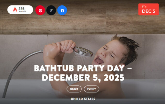 Bathtub Party Day encourages us all to skip the ordinary shower and linger in the tub instead. On December 5th, add some suds to the tub and pamper yourself.