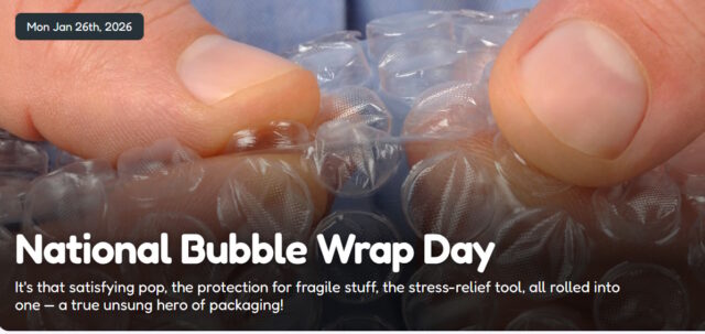 National Bubble Wrap Day (also known as National Bubble Wrap Appreciation Day) on the last Monday in January recognizes a fascinating piece of invention. Today, bubble wrap’s primary purpose is to protect fragile items either in shipping or storage. Of course, people also enjoy popping the bubbles in bubble wrap.