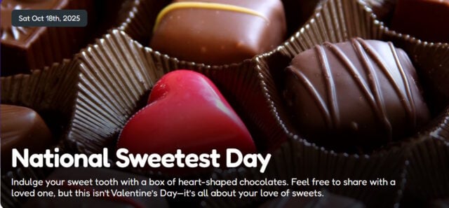 To put it simply, Sweetest Day every October 19, is a day to be sweet by sharing a kind thought, a small gift or a gesture of kindness. It’s a day to give a card with a sweet message to someone you appreciate. Little gifts of candy and other sweets are shared, as well.