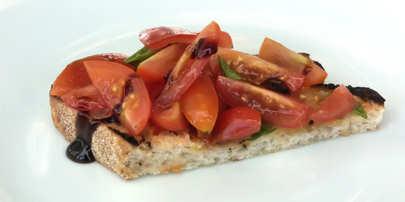 Cherry tomato, basil, olive oil and balsamic bruschetta
