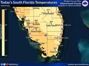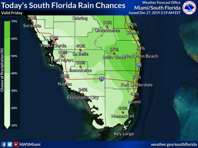 Friday features plenty of clouds, some sun, and passing showers on a gusty breeze (especially in the east coast metro area). A high risk of dangerous rip currents remains in place at the Atlantic beaches on Friday through at least Saturday evening. Highs on Friday will be near 80 degrees.