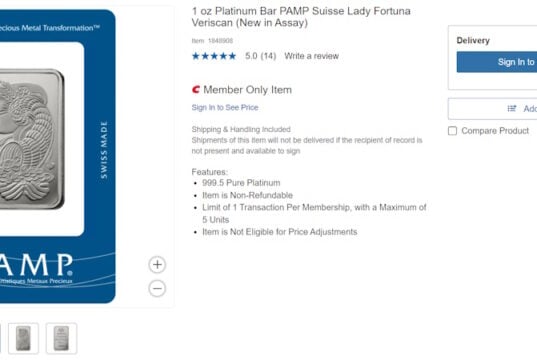 Costco Adds Platinum Bars To Its Precious Metals Lineup