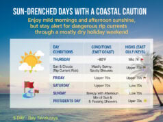 The most likely day for heavy and possibly severe thunderstorms will be Saturday. AccuWeather Senior Director of Forecasting Operations Dan DePodwin speculated that the primary zone for this risk stretches “from central Texas and southeastern Oklahoma to Louisiana, Arkansas, and western Mississippi.” Residents in these areas should be alert for damaging wind gusts and frequent lightning that could disrupt evening plans.