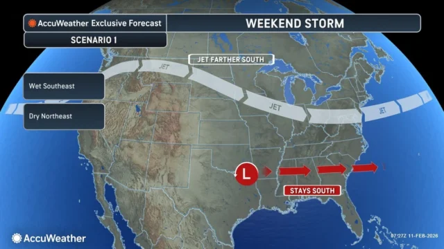 The romantic plans of millions across the southern United States may be under threat this Valentine’s Day as AccuWeather meteorologists track a powerful and expansive storm system set to sweep through the region. Following a period of relatively dry and mild weather, a shift in the atmospheric pattern is expected to funnel deep tropical moisture from the Gulf of Mexico northward, setting the stage for a “soaker” of a weekend that could disrupt outdoor activities and travel from Texas to the Atlantic coast.