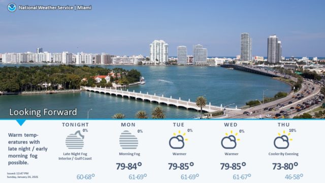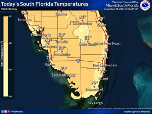 Wednesday will bring lots of sun to the east coast metro area and a nice mix of sun and clouds to the Gulf coast.  Wednesday’s highs will be in the low to mid-80s in the east coast metro area and the upper 70s along the Gulf coast.