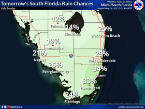 Thursday’s forecast calls for a mix of sun, clouds, showers and a few storms. Highs on Thursday will be mostly in the upper 80s in the east coast metro area, in the mid-80s in the Keys, and mostly in the low 90s along the Gulf Coast.