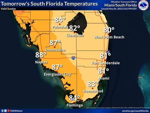 Wednesday will start with a mostly sunny morning, but a few storms will pop up in the afternoon. Wednesday’s highs will be near 90 degrees in the east coast metro area and along the Gulf Coast, while the Keys will reach the mid-80s.