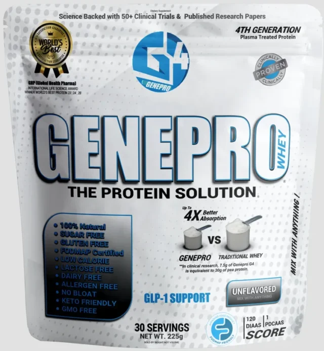 - Product name: Genepro Whey 4th Generation Plasma Treated Protein, unflavored