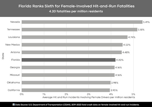 According to the research, Florida has the sixth-highest female-involved hit-and-run fatality rate in the United States.