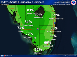 Thursday will feature mostly sunny skies alternating with showers and storms along the Gulf coast, while the east coast metro area will see good sun in the morning and showers and storms in the afternoon. Thursday’s highs will be in the low 90s.