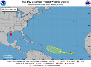 In the tropics, Delta is once again a major hurricane as it nears the northern Gulf coast. At 5 am, Delta was located near 26.9 North, 93.7 West, about 200 miles south of Cameron, Louisiana. Maximum sustained winds were 120 miles per hour, and Delta was moving north at 12 miles per hour. A hurricane warning is up from High Island, Texas to Morgan City, Louisiana. Tropical storm conditions are expected there Friday morning, with hurricane force winds and life-threatening storm surge arriving Friday afternoon.