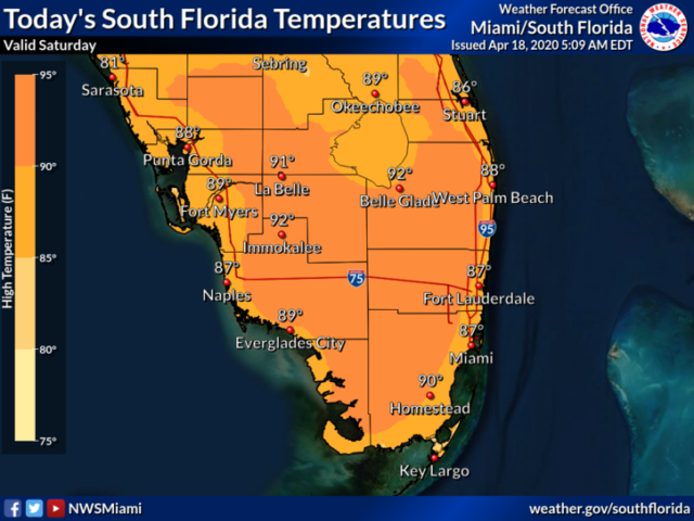 Saturday features summerlike heat, lots of sun, and clouds at times. Some passing showers will move through the east coast metro area, and some storms could pop up there in the afternoon. A moderate risk of dangerous rip currents is in place along the Palm Beach County coast, so just stay home. Highs on Saturday will be near 90 degrees along the Gulf coast and the steamy low 90s in the east coast metro area.