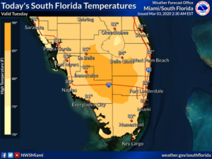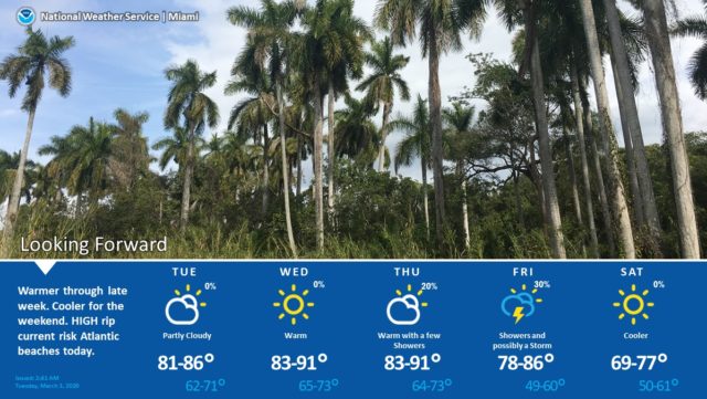Tuesday features a mix of sun and clouds with breezy conditions.  A high risk of dangerous rip currents is in place at the Atlantic beaches.  Highs on Tuesday will be in the low 80s.