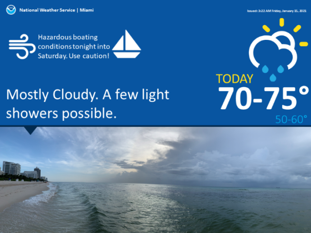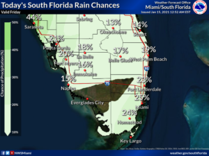 Martin Luther King Day will feature a mix of sun and clouds along the Gulf coast, while the east coast metro area will see lots of clouds and some showers. Monday’s highs will be in the low 70s.