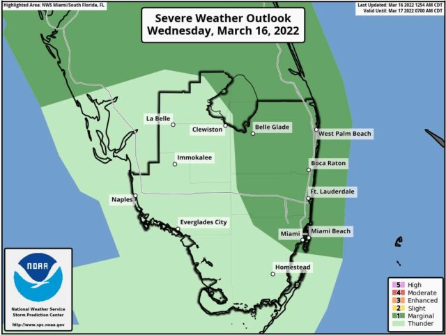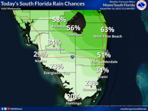 Thursday will bring mostly sunny skies, but look for some showers and maybe a storm or two in the east coast metro area. Thursday’s highs will be in the mid-80s.