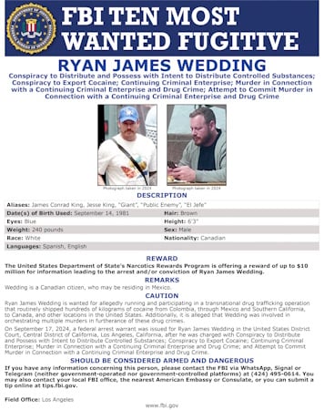 While the scale of the drug trafficking was massive—estimated to generate over $1 billion in annual proceeds—it was the accompanying violence that prioritized Wedding for the FBI’s most elite “Wanted” list. Federal indictments charge Wedding with orchestrating multiple murders to protect his operation.