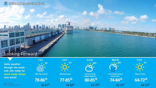 After some patchy fog in spots and seasonable morning lows, Friday features sunny skies and a rather brisk ocean breeze along the east coast. Watch out for an increasing risk of dangerous rip currents at the Atlantic beaches starting on Friday and lasting into the weekend. Highs on Friday will be near 80 degrees.