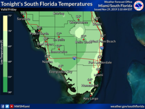 Look for some morning showers on a strong breeze on Monday as a front moves in. Monday’s highs will be near 80 degrees — but temperatures will drop quickly after dark.