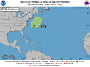 First, a nontropical low a few hundred miles east of North Carolina is producing plenty of showers and storms as it becomes better organized.  While the National Hurricane Center still gives this feature a low chance of developing, it does have gale-force winds.  So it would be a tropical storm or subtropical storm if it acquires tropical or subtropical characteristics.  However, it’s moving away from land.