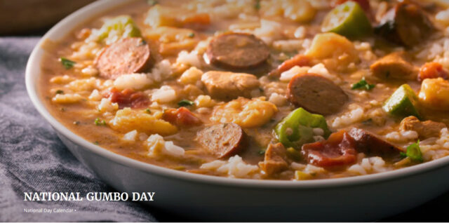 A heavily seasoned, stew-like dish is in the spotlight on National Gumbo Day, which is annually observed on October 12. Originating in southern Louisiana during the 18th century, Gumbo is a dish that typically consists of a strongly flavored stock, meat or shellfish, a thickener, and seasoned vegetables.