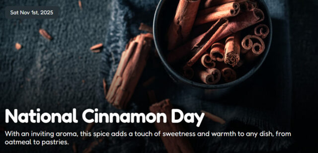 • 2019 – McCormick & Co., Inc. founded National Cinnamon Day in 2019 to celebrate the versatility of one of the most popular spices in America’s kitchens.