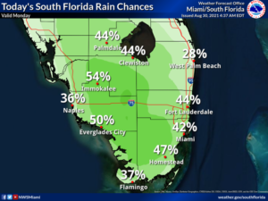 Wednesday will begin the month of September with sunny skies and a few afternoon showers with maybe a storm.  Wednesday’s highs will be in the low 90s in the east coast metro area and near 90 degrees along the Gulf coast.