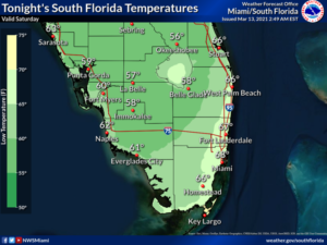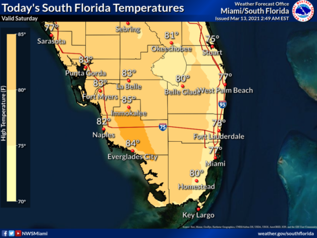 Wednesday’s forecast calls for plenty of sun, a few clouds in the east coast metro area, and breezy conditions near the Gulf coast. Highs on Wednesday will be in the mid-80s.