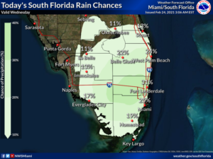 Wednesday features lots of sun, a few clouds at times, and some quick east coast showers on an ocean breeze. A high risk of dangerous rip currents remains along the Palm Beach County coast, and there’s a moderate rip current risk at the beaches of Miami-Dade and Broward. Highs on Wednesday will be mostly in the low 80s.