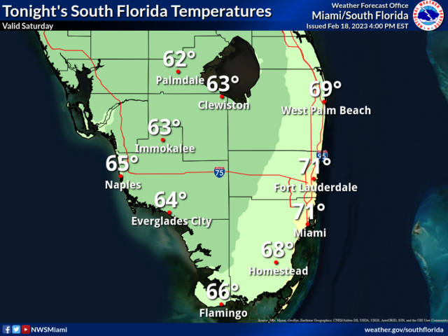 Presidents Day will be sunny around South Florida, so enjoy the holiday outdoors. Monday’s highs will be in the mid 80s in the east coast metro area and near 80 degrees along the Gulf coast.