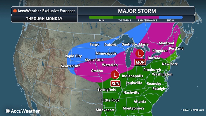 “The storm is expected to intensify rapidly enough from Sunday into Monday to likely meet bomb cyclone criteria,” AccuWeather experts noted, signaling a high-impact event that will stretch from the central U.S. into the Northeast.