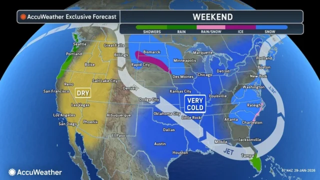 - Flood Risk: As the massive snowpack from Storm Fern and the upcoming weekend system eventually melts, AccuWeather warns of an elevated risk of river and flash flooding in the Mississippi and Ohio River valleys.