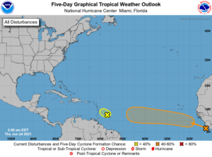 In the tropics, the wave about 200 miles east of the Lesser Antilles has a low chance of development as it encounters hostile upper level winds. But it could bring heavy rain and gusty winds to some of the islands on Friday. Elsewhere, we’re watching a strong wave emerging off the coast of Africa. This wave has a medium chance of developing into a depression during the next 5 days.