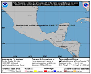 Elsewhere, Nadine has dissipated over Central America. Its remnants will move into the eastern Pacific, where regeneration is expected (but with a different name). But flash flooding from heavy rain continues to be a threat to Belize and portions of Mexico and Guatemala.