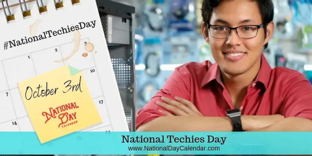 • Take note that National Techies Day falls during National Cyber Security Awareness Month. Techies ensure our devices are protected and secured. They develop the software and help us maintain our computers, smart devices, and more. If you don’t protect your computers – find a techie today!