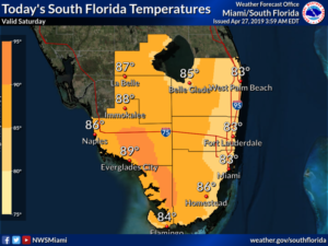 Monday will feature a mix of sun, clouds, passing showers, and maybe a stray storm. Monday’s highs will be in the mid 80s.