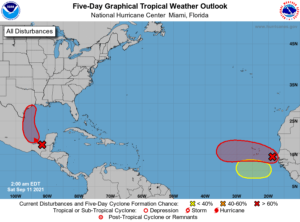 Elsewhere, the area of disturbed weather over Central America and southern Mexico has a high chance of developing into a depression in the next day or so as it emerges into the Bay of Campeche. A wave just off the African coast has a high chance of developing by early next week. Regardless of development, this system will bring heavy rain and gusty winds to the Cape Verde Islands.