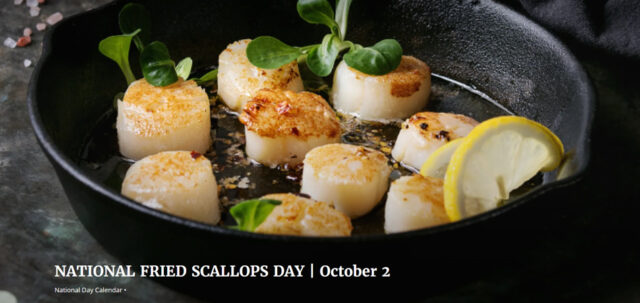 Right at the beginning of National Seafood Month, National Fried Scallops Day serves up a seafood dish enjoyed across the country. October 2nd each year brings scallop fans together to celebrate their favorite dishes.