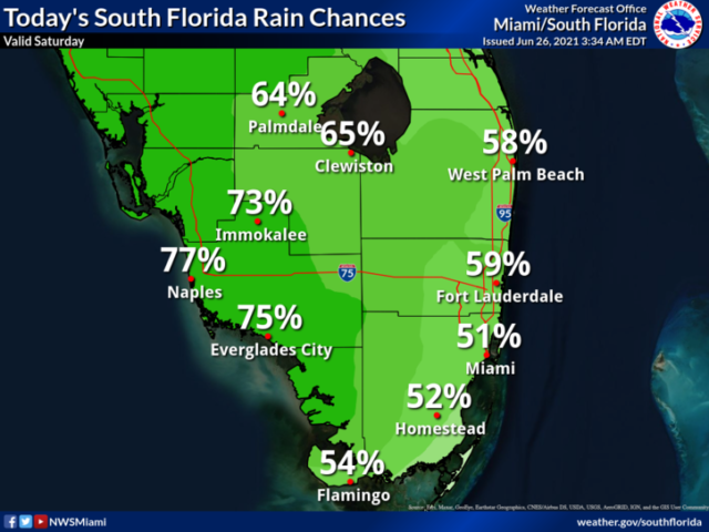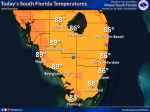 Sunday will be another day of widespread showers and storms alternating with sun and clouds. Sunday’s highs will be in the upper 80s in the east coast metro area and near 90 degrees along the Gulf coast.