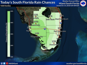 South Florida will see sun, clouds, and a few showers on Sunday. The day features some early showers at both coasts, followed by sun and some clouds on the ocean breeze. Afternoon and evening showers and a few storms will develop in the interior and along the Gulf coast. Highs on Sunday will be in the upper 80s at the coasts and the low 90s inland.Monday will be mostly dry, with a few passing showers zipping by on an ocean breeze. Monday’s highs will be in the upper 80s at the Atlantic coast and a bit warmer elsewhere.